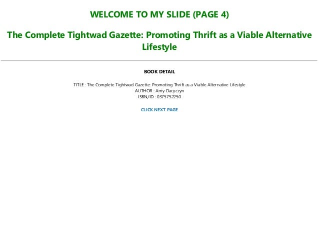 Promoting thrift as a viable alternative lifestyle Amy Dacyczyn. Download and Read online The Complete Tightwad Gazette ebooks in PDF epub Tuebl Mobi Kindle Book. Originally published in three separate volumes under the titles.